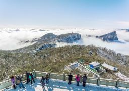 ★天门索道:索道线路斜长7455米,上、下站水平高差1279米,单线循环脱挂抱索器车厢式索道;